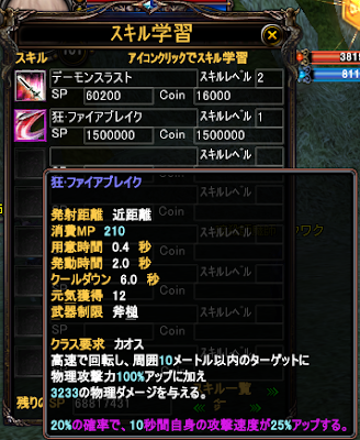 スポンサーリンク 狂ファイアブレイク、狂アックスマスタリ 完美世界 X Facebook はてブ LINE コピー 2014.08.12 狂ドラゴンバーストは持ってるのに狂ファイアブレイク持ってなかったの? とゆうわけで、やっと覚えてきました>< あ。あとあとアックスマスタリも!